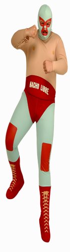You'll have fun wearing this nacho libre costume to any costume party. Includes jumpsuit with attached boot tops and mask. Standard size fits to 44" chest and 40" waist. Features jumpsuit with Nacho Libre belt. Standard size fits up to 44" chest and 40" waist. This product comes from Rubies which makes dress-up fun for all ages.